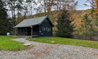 -The property boast 2.5 acres of grassy field and woods with mountain views and natural mountain springs, one of which provides potable drinking water directly to the cabin. There is a partial fence, but the property is not completely fenced in. This cabin is natural gravity spring fed, sometimes impacting water pressure. Baths are best. Often you can hear the sounds of the Telford Hollow Creek located across the street. You will be the only guests on the property, which is conveniently located on CR-26, a main road connecting Downsville to Hamden. The surrounding areas of Downsville, Hamden, and Delhi are classic Western Catskill farming and dairy towns, and the cabin is set right off of the road for easy year round access.