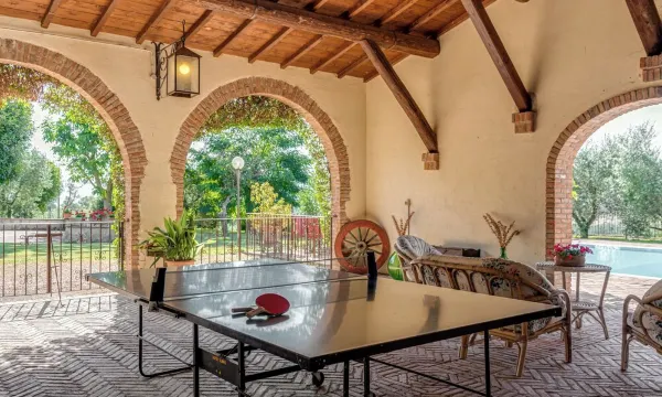 The villa is characterized by the presence of a pleasant flower garden, a large equipped patio and reserved for outdoor dining with bbq. The splendid swimming pool (12x6) is surrounded by olive trees and has a shower and a loggia equipped with sofas and table tennis. The swimming pool is not for exclusive use.