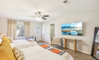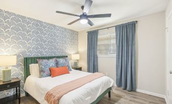 Minutes from Texas A&M and Kyle Field, this spacious 5-bedroom, 3-baths home is perfect for up to 14 guests. Boasts a karaoke room and a game room for endless fun. The backyard features a fire pit for cozy evenings under the stars.