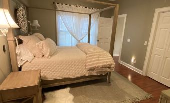 Welcome to the Carriage House, a part of the Eden at Gracefield Event Venue. Located in the beautiful SC LowCountry, come stay in this charming, well-appointed one bedroom one bath cottage and take in the beauty of our lakes and grand oaks. Fully furnished with a queen canopy bed, full living room with large comfy couch, 2 chairs, dining table and kitchenette with induction cooktop, refrigerator/freezer, toaster, coffee maker and air fryer oven. High speed internet and ROKU tv in the living room. Fish off the banks of multiple lakes. You will never want to leave the peace of our estate. We are a wedding and event venue and this is the only one-bedroom available for rent on the estate. Perfect for the parents of the bride or groom, who want to be close to the party but have their own space. Located immediately adjacent to the Manor House, with easy access to the beautiful veranda where your wedding party can all gather to fish or hang out around the outdoor fireplace. Beautiful gardens full of camellias and southern pink azaleas... Oak lined drives and crepe myrtles and palm trees abound! ** Please be aware if there is another wedding going on during your stay thatbride and groom have priority to the veranda and fountain areas for photos.**About pets:No pets allowed.About checkOut:Check out before 10:00 AM.About children:Children allowed: ages 0-17.About customRules:No hunting is allowed on the property.No parking is allowed in the brick courtyard in front of the manor house. Please park behind the carriage house in the pine tree field.,No use of the veranda of manor house when weddings are taking place - brides and grooms have priority to use space for photographs.About checkIn:Check in after 4:00 PM.About smoking:Smoking is not permitted.About minBookingAge:Minimum age to rent: 22.About events:No events allowed.