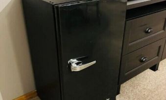 We have stocked kitchenette complete with a hot plate, crock pot, microwave, Keurig coffee maker and Kcups, and also hot water kettle with tea packets. You can enjoy your snacks or beverages at our dining/game table, or relax outside on the patio with the incredibly majestic view of Pikes Peak on the furniture that is provided there.