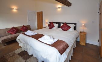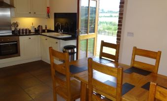Set in a Victorian Court Yard setting, contemporary brick and flint barn conversions, vaulted ceilings, beams, The Leat House has 2 en-suite bedrooms, the one has a king bed with a shower en-suite this has a 4"lip to step in, the other bedrooms has a queen or it can be a twin en-suite with a shower over the bath, there is a sofa bed for a child in this bedroom., this cottage is very spacious with dining seating for up to 6 and comfy seating for 7 in the lounge where there is a woodburner for cosy winter nights in, a smart TV. The kitchen is fully equipped with a dishwasher, cooker, microwave a fridge with small freezer, there is a chest freezer in the games barn if needed., this cottage is nearly all on one level with 3 shallow steps inside and parking directly outside. it has Geothermal underfloor heating. It has a large shared lawn with its own patio and fire bowl. Set in the East Devon AONB, with stunning views of Coly Valley from every room, tennis court, games barn, fishing in small lake and river on farm. 15 minutes from heritage Jurassic Coast, Beer, Branscombe, Lyme Regis, Sidmouth beaches, brimming with history. Dorset, Somerset boarders only a short distance away. If you enjoy the bird life there are swallows, house martins, Owls, Woodpeckers to name but a few. Set on a family working dairy farm.