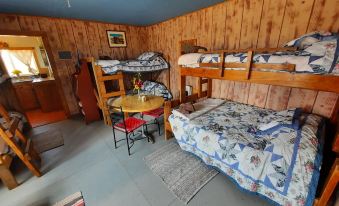 A quaint look at a working ranch. Comfortable double bed bunkhouse accommodations. Carrie did all of our cooking in the central dining house and all meals were excellent! Everyone working there was part of one family and they are riendly and helpful. A map of the area that they made was provided and it looked very professional. It allowed us a historical view of the area and gave us something to do including fishing for the day.In short, we more than enjoyed our stay!!!