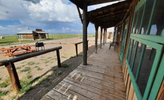 Taste the 1800s in our western school house. Cowboy bunk-house style sleeping arrangement with 3 bunk beds. Also, an inviting kitchenette facility and spacious shower as well as solar lighting, USB charging ports, and a propane heater. Do the planet a favor and stay at our environmentally friendly, off grid solar powered, largely self sustaining ranch.