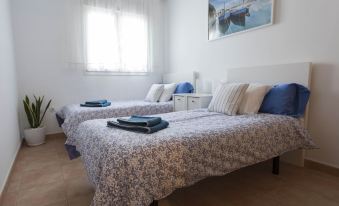 Apartment with two bedrooms, one bedroom with double bed and the other bedroom with two single beds. Both rooms have large wall cupboards. The two bathrooms are fully equipped, one with shower, toilet, bidet and sink and the other with bad shower, toilet, bidet and sink. The medium-sized kitchen is complete with a washing machine, dishwasher, microwave, ceramic hob and everything you need for cooking. The apartment has a small terrace with table and chairs with a nice view of more. There is also a snail staircase on the terrace to go to the private roof terrace. On the roof terrace there is a table with chairs and sun loungers and a fantastic view of the sea and the village. In the same building is the garage where a reserved parking space is available for our guests. The apartment is on the second floor and is accessible by elevator.About pets:No pets allowed.About checkOut:Check out before 12:00 PM.About children:Children allowed: ages 0-17.About checkIn:Check in after 3:00 PM.About smoking:Smoking is not permitted.Wir erlauben rauchen auf Terrasse und Dachterrass.About events:No events allowed.