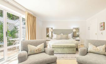 The 5 star boutique hotel is in a most exclusive area just one minutes drive from the chic Constantia Malls fashionable shops and restaurants. An easy approach to freeways gives guests superb access to all the Capes scenic delights from Simonstown and the False Bay beaches to the City Centre Waterfront and beyond. Golf lovers will be spoilt for choice with championship golf courses situated a stones throw away.