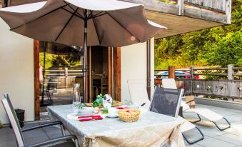 Beautiful residence "La Ferme de Sandra", built in 2013. Excellent location: right in the centre but still quiet. In the house: lift, storage room for skis, central heating system, washing machine, tumble dryer (for shared use, extra). Motor access to the house. Grocery 350 m, supermarket 150 m, restaurant 260 m, bakery 350 m, bus stop "Haute-Nendaz, station/poste" 300 m, railway station "Sion" 16 km, outdoor swimming pool 850 m. Golf course (18 hole) 16 km, tennis 800 m, walking paths from the house 350 m, gondola lift 300 m, sled run, children's playground 450 m. Nearby attractions: Alaïa Bay - Surf 15 km. Well-known ski regions can easily be reached: Nendaz Tracouet 4 Vallées 400 m. Hiking paths: Bisse du Milieu 350 m. "la Ferme de Sandra F0", 2-room apartment 34 m2, on the ground floor, north-west facing position. Comfortable and beautiful furnishings: living room with panoramic window with cable TV. Exit to the terrace. 1 room 8 m2 with 1 french bed (140 cm, length 200 cm). Exit to the balcony. Open kitchen (oven, dishwasher, 4 ceramic glass hob hotplates, toaster, kettle, electric coffee machine, Capsules for coffee machine (nespresso) extra, raclette grill, fondue Set (chinoise, cheese)). Shower/WC. Large terrace 32 m2, north-west facing position. Barbecue (portable). View of the mountains. Facilities: hair dryer. Internet (WiFi, free). Parking space n 6. Please note: non-smokers only.