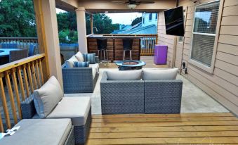 In the fully stocked kitchen, you'll find a stove, oven, refrigerator, grill, microwave, dishwasher, blender, toaster, ice maker, and all the dishes and utensils you need to whip up delicious meals. Relax in the living room or step outside to the fire pit and outdoor furniture. For entertainment, challenge your friends to a game in the game room or try your hand at the video games.