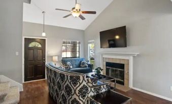 This lovely two-story home offers plenty of space and comfort for your stay. Step out onto the private back deck and enjoy a cup of coffee, or channel your inner pitmaster at the grill. Cozy up and relax in the living room with two couches and a 65" Smart TV , perfect for family movie nights. High-speed internet is available throughout the home, ensuring everyone stays connected.