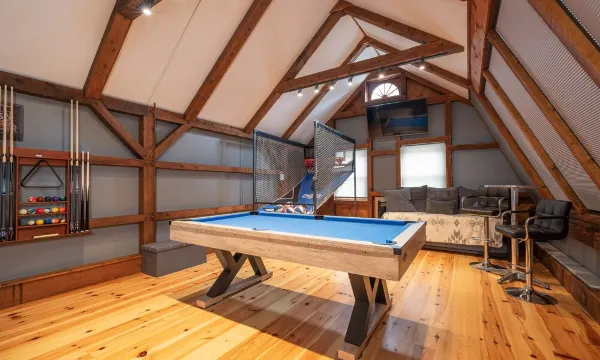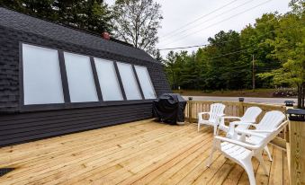 LUXURY, designer, state-of-the-art post and beam home ON THE SACO RIVER with ALL the bells and whistles. Enjoy a very unique stay in this newly renovated home. Relax and de-stress in the Spa room equipped with indoor hot tub, sauna, and message chair. Have a family movie night in your private movie theatre. Relax while the kids keep busy playing basketball, skeeball and air hockey. Maybe a game of pool after dinner in a brand new kitchen? You'll have a blast here no matter what the weather! Security caneras located on the EXTERIOR only. One at the front, side parking lot, and rear driveway area.About pets:No pets allowed.About checkOut:Check out before 10:00 AM.About children:Children allowed: ages 0-17.About checkIn:Check in after 4:00 PM.About smoking:Smoking is not permitted.About minBookingAge:Minimum age to rent: 18.About events:Events allowed: family gatherings and weddings.Maximum event attendees: 16.