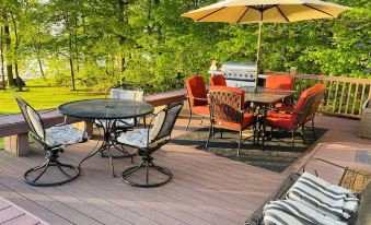 Step out from the living room to the spacious deck, where you’ll find beautiful lake views, plenty of seating, and a propane grill. Start your day with coffee at sunrise or share wine with friends and family at sunset.