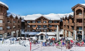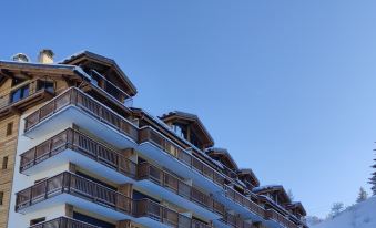 The Grandes Bosses building offers you a view of the living room on the Courchevel 1850 mountain and rooms overlooking the Club Hotel and shops.