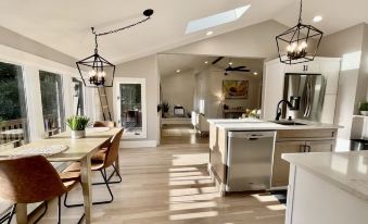 Great house with plenty of room to be together (10 of us) or spread out, and the heated pool and fire pit for smores were spectacular. Home was clean and well stocked with the basics such as pool towels, bathroom supplies, and so forth. Having a table for 10 both poolside and in the dining room was great for meals. Samantha was a terrific host, checking in with us to be sure all was good and responding immediately when we had questions. While the lake had been lowered for repair due to a breach in the dam, we took advantage of everything else and had a great vacation.