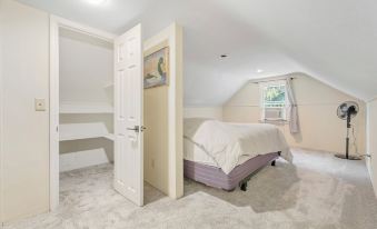King Bedroom: Located upstairs for ultimate privacy, featuring a full bathroom (towels, bed sheets, and pillows provided).