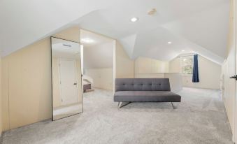 Stayed while attending our family reunion event. It was a lovely with clean rooms and bathrooms. Nice kitchen with adequate kitchen utensils. Bit of a challenge with a long driveway with little room to turn around. Challenge to back into driveway off of a somewhat busy street. Location very good with restaurants and grocery store nearby. Lovely 6 day stay!