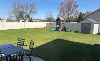 • Large Backyard: A fenced-in yard with a dedicated play area—perfect for kids to run around safely while adults relax on the patio.