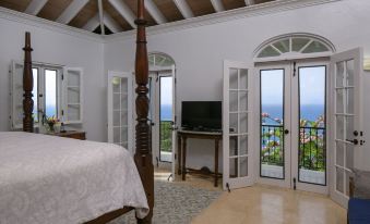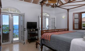 Leeward's four bedrooms are furnished with king sized beds and 42 inch TVs. All are ensuite, which are beautifully tiled and fitted with rain shower heads. The two upper floor bedrooms have covered balconies which create the perfect spot for your morning coffee or a moment of solitude looking out over the bay. There is a twin daybed with twin trundle in one of the downstairs bedrooms as well as the king sized bed.