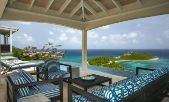 The views continue from the vaulted Great Room, which with comfortable seating and 60 inch TV provides the perfect space for relaxing indoors. From here, French doors open onto the expansive coral stone deck. Within the outdoor Pavilion is a shaded seating area as well as a bar and grill, whilst the deck has space for plenty of sun loungers. The south facing aspect ensures you can enjoy the Caribbean sun long into the late afternoon.