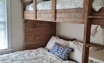 2 bedrooms: 1 bunk bed and 2 queen beds