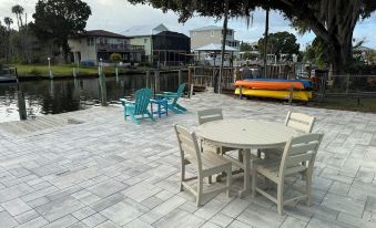Unwind on the back deck and/or dock with a cocktail or two while enjoying the evening sunset. The 50’ dock has plenty of space for your boat and features an outdoor shower, fish cleaning table and ladder. Your vacation home sits just seven houses from the open waters of the river and includes the use of four kayaks that will get you to the river in just minutes.