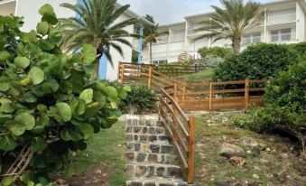 Alix our host was very easy to communicate with.Our unit was spotless and well equipped.Very close walk to Orient Beach.There is a pizzeria and grocery store on sight. Pool is beautiful as well.