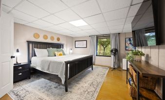 BEDROOM 1: 50” Smart Roku TV, King Bed, trundle Day Bed, nightstand, blackout curtains, 3 ceiling fans.