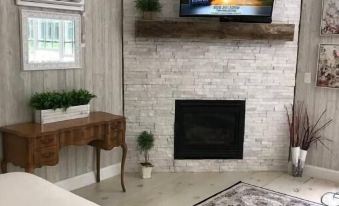 Air conditioning and gas fireplace. Walking trails throughout property. Fire pit area supplied with fire starters/lighter fluid. We sell bundles of firewood for a fee.