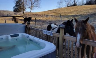 You'll love this place because of the spectacular views, horses, wildlife, fishing, hiking and hot tub for relaxing, a romantic getaway or simply just girl time. This spot is perfect for couples or solo adventurers! A unique suite is attached to an elegant vintage peg barn. Space for bringing horses, snowmobiles or ATV's since we have trails. A mile away from snowmobile trails and 25 mins from a State Park. Also, perfect for snowshoeing and cross country skiing. Fire pit available as well.