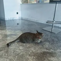 There's a short-legged tabby cat at the hotel with a wonderfully sweet disposition.