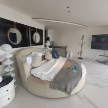 The room we booked was perfect for a family of four. It featured bunk beds that the kids absolutely loved, a fantastic sea view, and even a large transparent bathtub that kept the children entertained. My only minor complaint is that the bathroom privacy wasn't very good.
