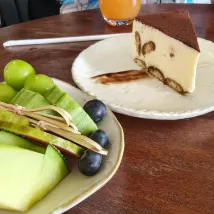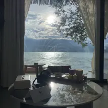 What truly captured my attention was the coffee shop on the ground floor. Its terrace, directly overlooking the lake, was spacious and bright, and my state of mind felt equally clear and serene. Ordering a freshly brewed coffee or a specialty drink, paired with pastries and desserts crafted by the chef right there, each bite was pure bliss. And to my delightful surprise, this exquisite afternoon indulgence was even included with the stay!