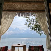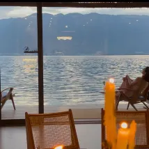 The service was good, though being constantly prompted for a review afterward was a bit bothersome. The location is genuinely beachfront, offering absolutely breathtaking views. Our child was thrilled, spending the entire afternoon on the terrace until dark on the day we arrived, even despite the cloudy and less-than-ideal weather. Since our room was right next to their café, which also serves as the breakfast area, we could hear people talking and cutlery clattering against plates from around 8 AM. The noise wasn't loud, however; you'd notice it if you were already awake, but it likely wouldn't disturb you if you were asleep, unless you're a very light sleeper.