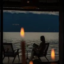 The waterside terrace is so close you can almost touch the waves, and seagulls often gracefully visit.