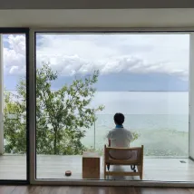 The rooms feature a minimalist, upscale design, with floor-to-ceiling windows directly facing Erhai Lake.