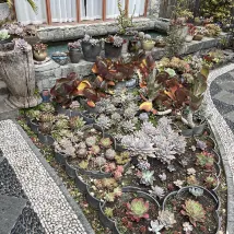 The next morning, I opened the curtains and saw the yard full of succulents and eye-catching rose-red flowers outside the balcony. On the other side, I could push the door directly into the yard. I really love this room! ! ! !