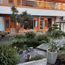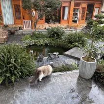 The garden environment is amazing! Surrounded by greenery, with small bridges and flowing water, and sunlight filtering through the leaves onto the courtyard – every photo taken here is picture-perfect. The cats and dogs at the place are super friendly; you could spend all day petting and playing with them. The biggest surprise is that it's just a 10-minute walk to the ancient city. After shopping, you can come back and relax in the courtyard with a coffee. The location and experience are simply flawless!