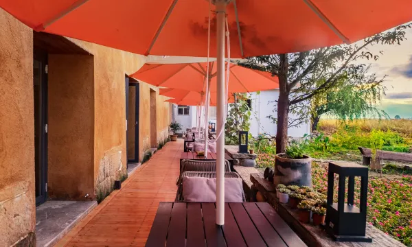 酒店地理位置很好,麥田邊古道旁巷子裏,是個古建築,但整個院子都是精心打理過的。