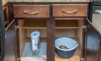 *Microwave, coffee maker (with complimentary coffee), toaster, blender, food processor, pots and pans and basic spices for cooking.