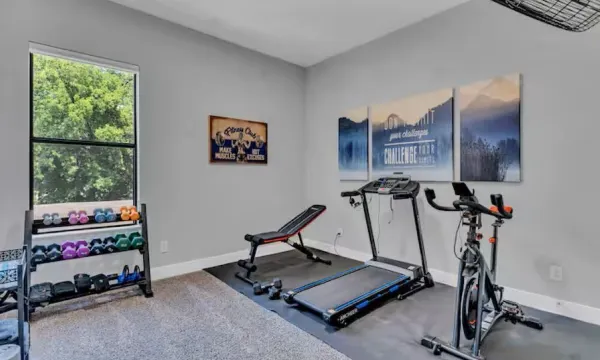 Three bedrooms offer a tranquil retreat, featuring premium linens, cozy bedding, and stylish decor, ensuring guests indulge in restful nights and wake up refreshed, ready to explore all that Trinity Groves has to offer. The fourth bedroom is a spacious half gym that can easily converted and outfitted with a cozy and comfortable Queen Air mattress.