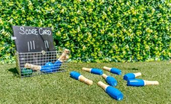 Guests can unwind in the inviting living area, complete with comfortable seating, a flat-screen TV, and high-speed Wi-Fi for entertainment and connectivity. The property also features a private gym, and ultimate backyard hangout. The gym features a treadmill, bike, and weight bench. The backyard is complete with fire-pit, ample seating, an outdoor bar, always green soft turf grass, and a variety of games like our giant chess and checkers, neon bean-bag, or bowling