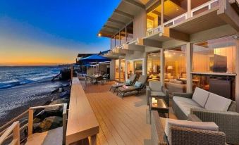 The large well-furnished ocean front deck is great for enjoying sweeping ocean views, sunsets, starlit skies, and lots of ocean wildlife - birds, whales, dolphins too - making it an exquisite seaside experience for everyone.