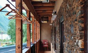 丹巴縣到莫斯卡途中的民宿,很大,老闆熱情款待,有早晚餐提供,雖然臨馬路,但是非常安靜,海拔不高,睡覺不影響,中央場地有一片小花花,可以露營