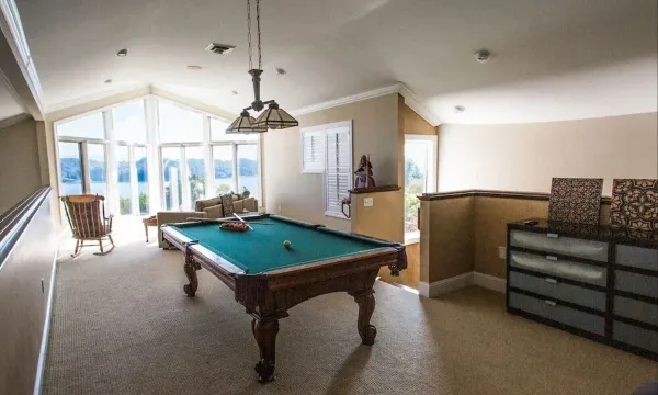 Breathing taking views, beautiful spa like pool, plenty of space in the house and fully equipped updated kitchens are just a few of my favorite things. Other outstanding things are the peacefulness found just by sitting and enjoying the view out to the lake and the smoky mountains in the background. One room in particular was amazing, is the room upstairs by the pool table. What a view especially at night with the moon over the lake.