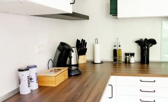 The kitchen is equipped with an induction cooker with four hobs, an oven, a refrigerator with a small freezer compartment, an extractor hood, a dishwasher, a toaster, a kettle, a blender and a coffee machine. All utensils for preparing tasty food and drinks are available in the kitchen. If something is missing, please feel free to contact us.