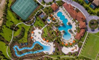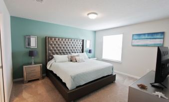 Come make great memories with your family/friends at this beautiful, fully furnished home. 5 Bedroom 5.5 bath (each room has an on suite/private bath), sleeps 10 guests with a screened-in private pool/spa. You will be 12 miles from main attractions: Disney World, Epcot, Magic Kingdom, and Animal Kingdom. This home is located in the Solterra Resort, a gated vacation home resort with a beautiful clubhouse, water slide, lazy river, and fitness center. Access to pool/spa heat at an additional cost.