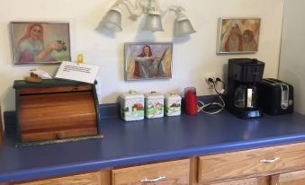 Clean and fully equipped kitchen. We love the upstairs room! TV is great. I love getting out on the trail around the spring fed pond. So peaceful!
