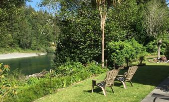 Fishermen, birdwatchers, active families or those searching for a quiet getaway; there is something for everyone at the River's Edge vacation rental. This is a one acre property located on the beautiful Smith River. We have lots of room to run and play for the kids. We have an assortment of fun yard games to enjoy while you visit. This is a cozy cottage style home with wood burning stove in one living room and a gas fireplace in the other. The four bedroom, three bath home provides plenty of comfortable sleeping arrangements for 10 people. The main house has three bedrooms. The fourth bedroom is a detached suite with two queen beds, a full bathroom and a laundry area. Enjoy the view and the sound of the river from indoors or outdoors, your choice, as there are plenty of windows to enjoy the view.