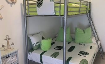 4 bedrooms: 5 single beds 1 queen bed and 2 king beds