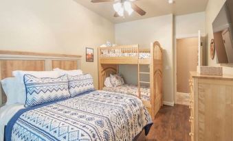 3 bedrooms: 1 bunk bed 1 queen bed 1 double bed and 1 king bed