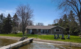 Come stay at our beautiful lakefront *the Crowned Shore Cottage* and enjoy all the local amenities! This family friendly cottage has 180 feet of lakefront directly on the lake and walkable to local stores & Pineview Highlands golf course, short drive to all the shopping and includes a dock to give you all the access to the beautiful Houghton Lake. The shoreline is shallow and rises up to a max of 4-5 feet at the end of the dock (about 100ft away!), young children can enjoy the sandy lakefront!